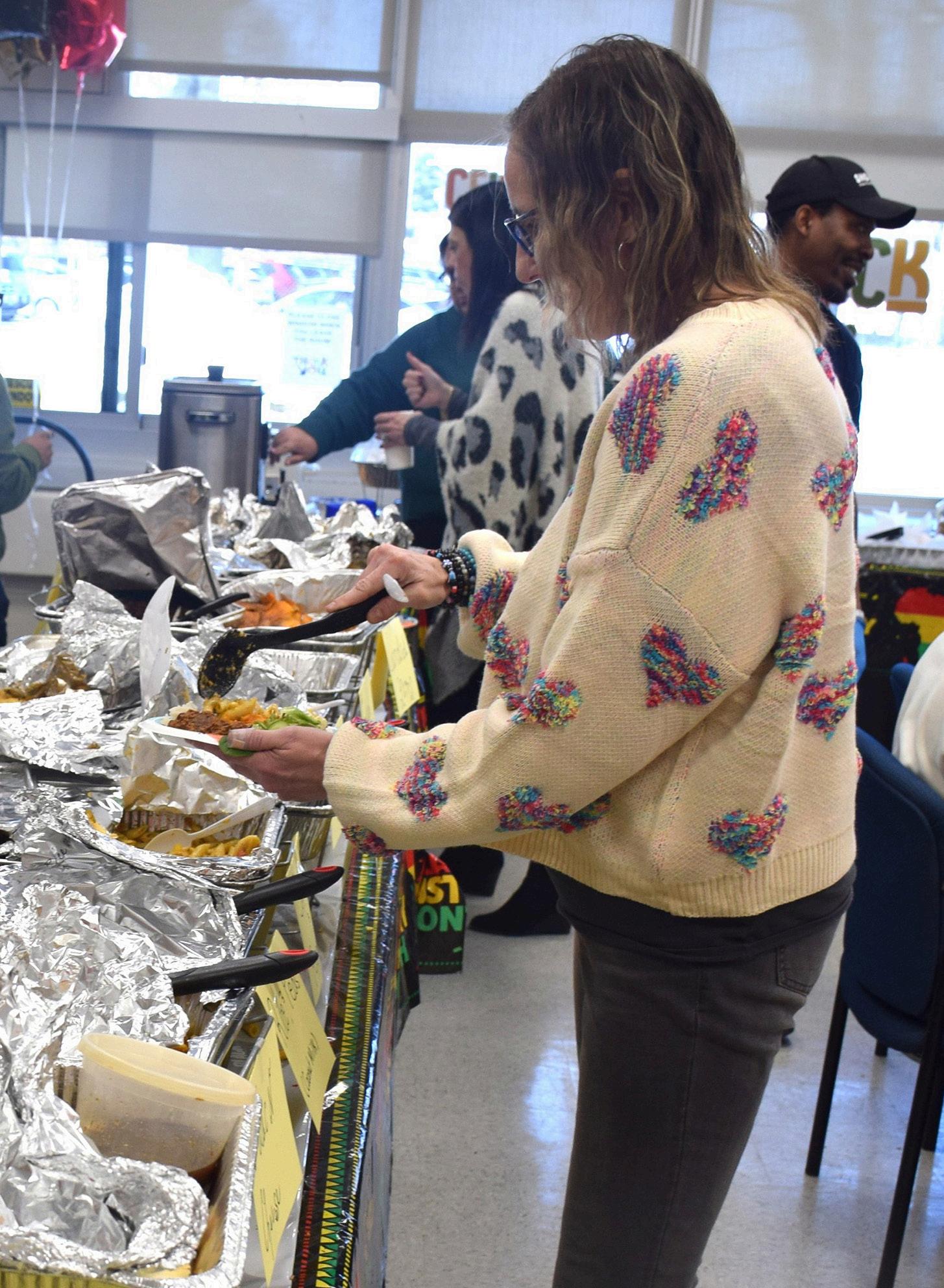 celebratory atmosphere. The aromas of the diverse cuisine filled the break room and drifted into the hallways, reflecting the warmth and unity of the school community. The event highlighted the importance of honoring Black history while strengthening bonds among staff members.