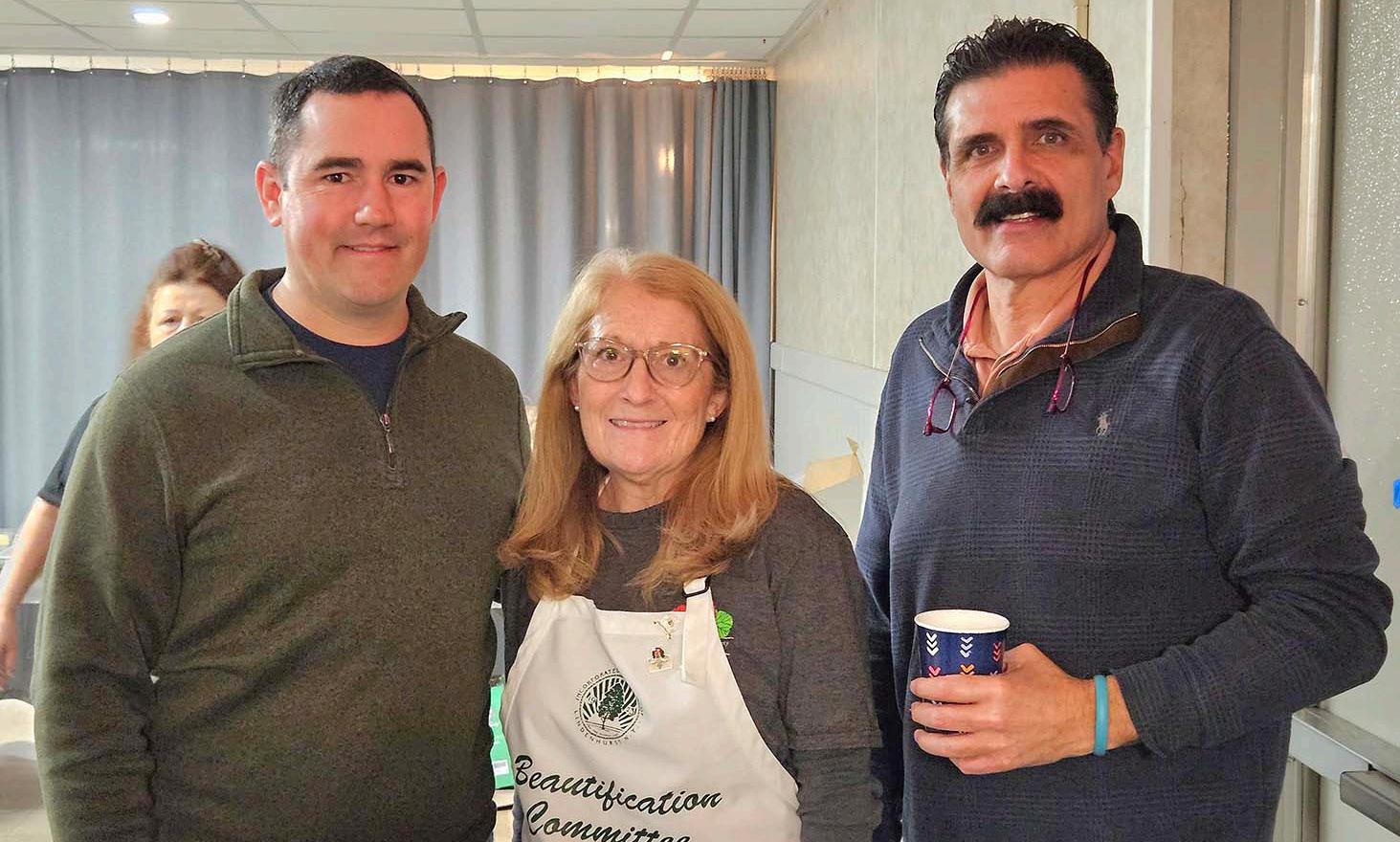 Guests enjoyed a complete pancake breakfast along with raffles and community camaraderie. Behind the grill were volunteers from the Beautification Society, joined by Trustee Pat Pichichero, Trustee Dave