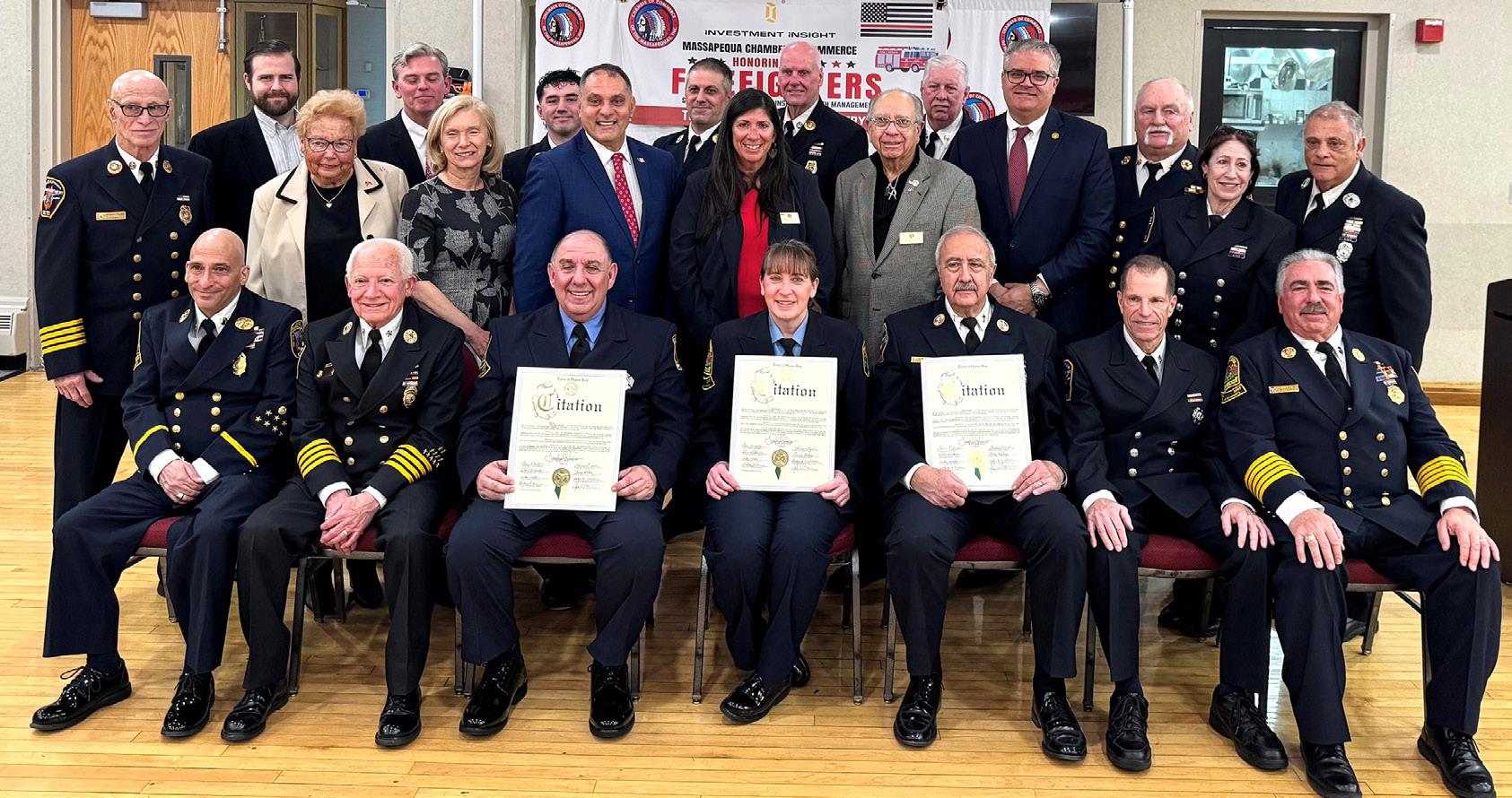 MASSAPEQUA VOLUNTEER FIREFIGHTERS HONORED - Oyster Bay Town Supervisor Joseph Saladino and Town Councilman Andrew Monteleone recently joined the Massapequa Chamber of Commerce at their Annual Volunteer Firefighters of the Year Awards Ceremony to honor the outstanding service and dedication of volunteer firefighters from both the Massapequa and North Massapequa Fire Departments.