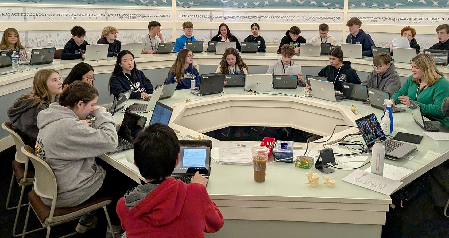 Ninth grade Science Research students at Massapequa High School’s Ames Campus are gaining real-world experience through a multi-year environmental study. Students made their second visit of the school year to the Dolan DNA Learning Center at Cold Spring Harbor Laboratory.