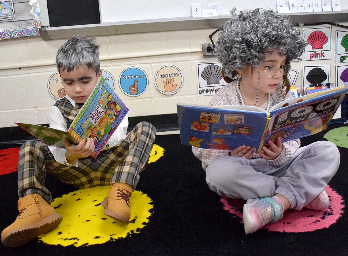 Anthony Casella and Lily Illuzzi read books about the 100th day of school. Photos courtesy of the Seaford School District