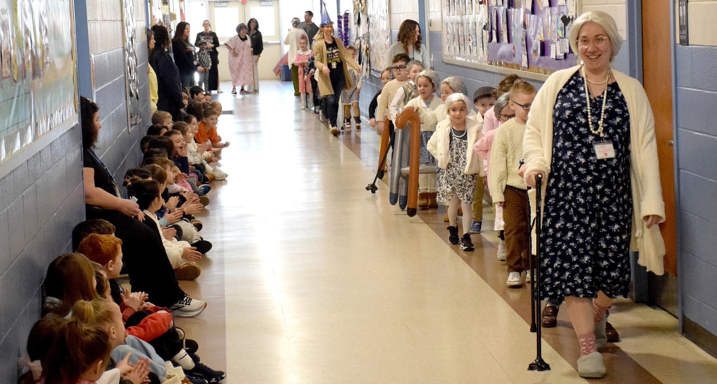 Students from grades 1-5 lined the hallways to cheer and give high-fives.