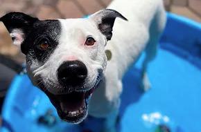 6 year old Pit mix. Happy, affectionate, and outgoing. Perfect for an active family.
