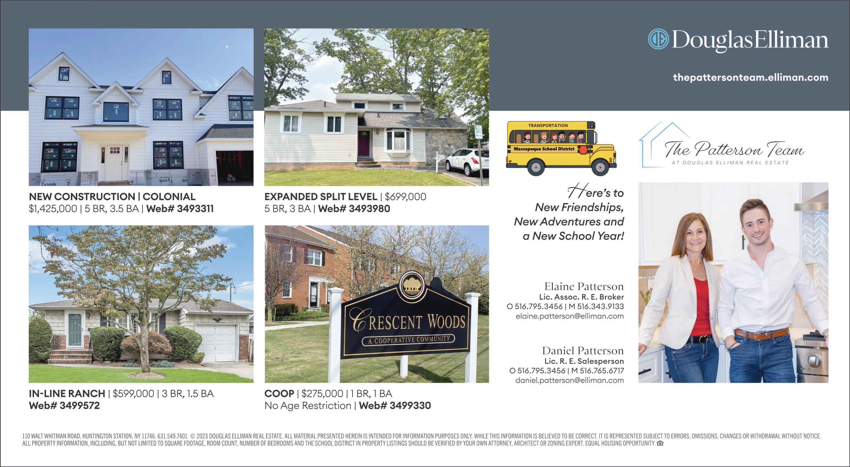 23 MASSAPEQUA PARKSOUTH BAY’S NEIGHBOR NEWSPAPERSWEDNESDAY, SEPTEMBER 6, 2023 • WWW.LONGISLANDMEDIAGROUP.COM 414124N090623 110 WALT WHITMAN ROAD, HUNTINGTON STATION, NY 11746. 631.549.7401 ©2023 DOUGLAS ELLIMAN REAL ESTATE. ALL MATERIAL PRESENTED HEREIN IS INTENDED FOR INFORMATION PURPOSES ONLY. WHILE THIS INFORMATION IS BELIEVED TO BE CORRECT, IT IS REPRESENTED SUBJECT TO ERRORS, OMISSIONS, CHANGES OR WITHDRAWAL WITHOUT NOTICE. ALL PROPERTY INFORMATION, INCLUDING, BUT NOT LIMITED TO SQUARE FOOTAGE, ROOM COUNT, NUMBER OF BEDROOMS AND THE SCHOOL DISTRICT IN PROPERTY LISTINGS SHOULD BE VERIFIED BY YOUR OWN ATTORNEY, ARCHITECT OR ZONING EXPERT. EQUAL HOUSING OPPORTUNITY. MGoodmanRealtorSellsHomes@gmail.com Follow us on The Michele and Mark Goodman Team and GOLD AWARD Top 12% of Agents Nationwide #1 Team Massapequa Office By Gross Commission Income Certified Fine Homes & Waterfront Specialist 35+ Years Proven Success! THE MICHELE AND MARK GOODMAN TEAM Long Island FROM OUR HOME TO YOURS ... HAPPY & HEALTHY ROSH HASHANAH! The Michele & Mark Goodman Team Simply The Best! ... Experience You Can Trust! Exceeding Expectations ... Dedicated To Delivering Unparalleled Results! Call Us Direct - Free Market Evaluation - 516-655-6613 “We’ve known Mark and Michele Goodman for almost 15 years. They did an outstanding job, assisting us with PURCHASING and SELLING our home in Massapequa. Their EXPERTISE in the market was instrumental in determining a competitive purchasing and selling price. They sold our home for considerably OVER LIST PRICE! They