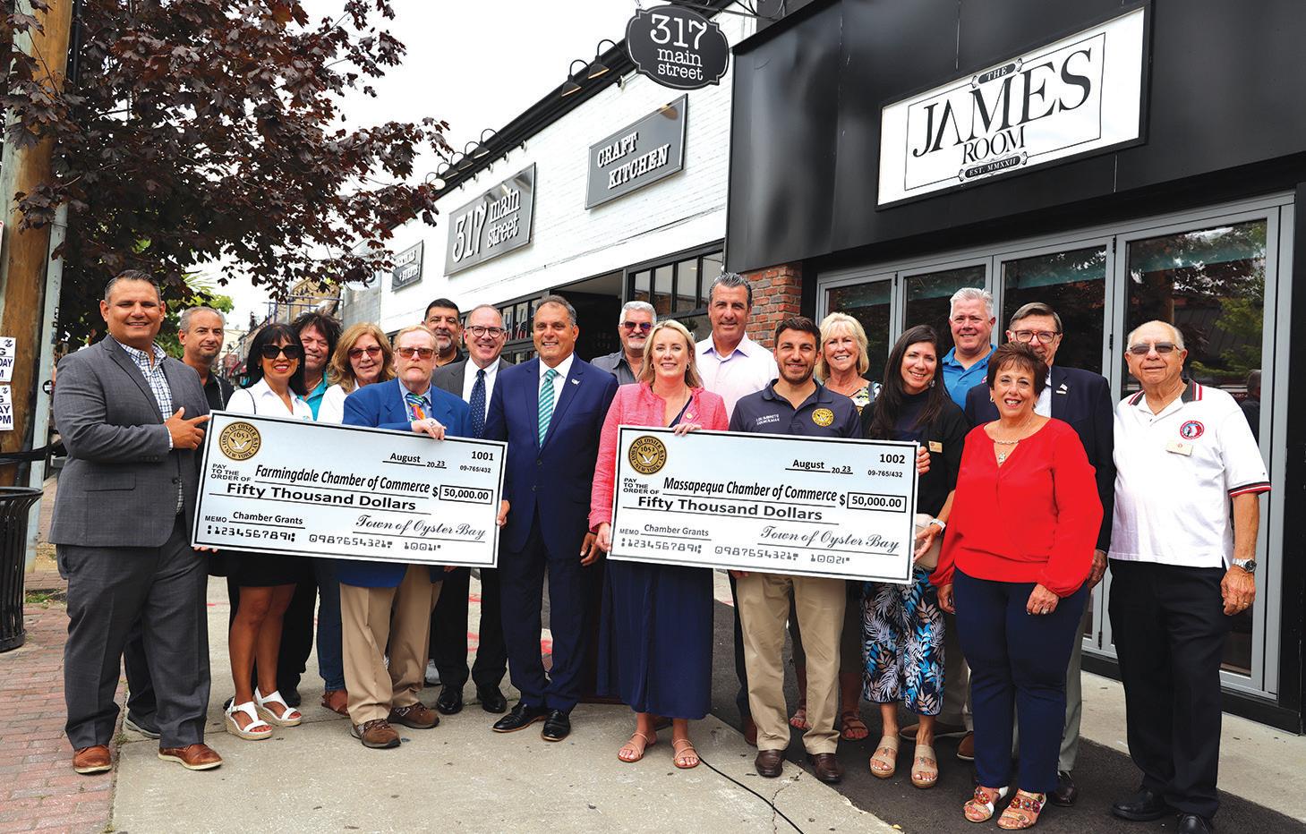 - Oyster Bay Town Supervisor Joseph Saladino and members of the Town Board recently announced more than a half million dollars in grant funding to help support local Chambers of Commerce and Business Associations that were negatively impacted by the COVID pandemic. The Farmingdale and Massapequa Chambers of Commerce were the first to receive the funding from the Town.