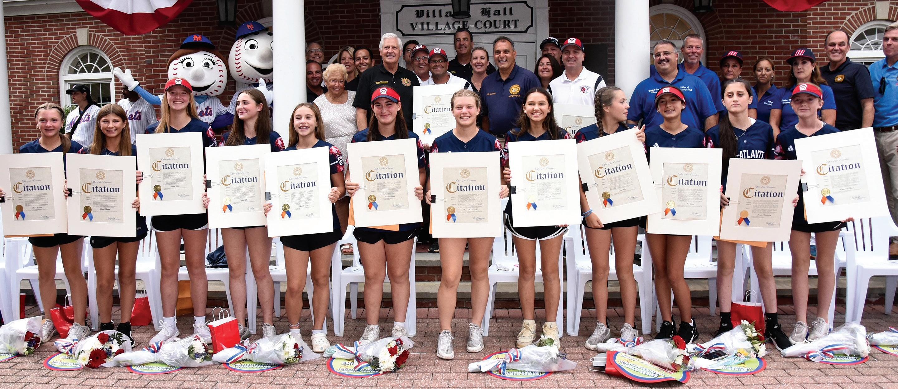 On Monday, August 28th, hundreds of spectators gathered along Park Blvd in Massapequa Park to cheer on the 12-year-old Massapequa International Little League Softball Team as they celebrated an amazing victory in the Little League World Series. Oyster Bay Town Supervisor Joseph Saladino, Nassau County Executive Bruce Blakeman, and Massapequa Park Village Mayor Danny Pearl recognized these inspirational athletes as they became the first New York Team to ever win the Little League Softball World Championships.