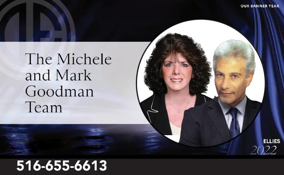 28 MASSAPEQUA PARKSOUTH BAY’S NEIGHBOR NEWSPAPERSWEDNESDAY SEPTEMBER 28, 2022 • WWW.LONGISLANDMEDIAGROUP.COM 401983N092822 110 WALT WHITMAN ROAD, HUNTINGTON STATION, NY 11746. 631.549.7401 ©2021 DOUGLAS ELLIMAN REAL ESTATE. ALL MATERIAL PRESENTED HEREIN IS INTENDED FOR INFORMATION PURPOSES ONLY. WHILE THIS INFORMATION IS BELIEVED TO BE CORRECT, IT IS REPRESENTED SUBJECT TO ERRORS, OMISSIONS, CHANGES OR WITHDRAWAL WITHOUT NOTICE. ALL PROPERTY INFORMATION, INCLUDING, BUT NOT LIMITED TO SQUARE FOOTAGE, ROOM COUNT, NUMBER OF BEDROOMS AND THE SCHOOL DISTRICT IN PROPERTY LISTINGS SHOULD BE VERIFIED BY YOUR OWN ATTORNEY, ARCHITECT OR ZONING EXPERT. EQUAL HOUSING OPPORTUNITY. mgoodmanrealtorsellshomes@gmail.comFollow us on The Michele and Mark Goodman Teamand WATERFRONT! BEST BUY! REDUCED! HURRY! Massapequa, Nassau Shores | 5 BR, 2.5 BATH | REDUCED $986,000 WATERFRONT! A WOW! YOU FOUND IT! Nassau Shores 5 BR, 2.5 Bath Colonial, Custom Built In 2002 With 2,763 Sq Ft Of Living Space Exceeding TOB Building Codes. Much Larger Than Exterior Photo Portrays! Open Concept Floor Plan! 2 Story Vaulted Entry, Skylights, Floating Staircase! 9 Ft High Ceilings In LR, DR & Kitchen. 1st FLOOR OFFERS A POSSIBLE M/D - 15.3’ x 16.7’ VAULTED EN-SUITE PRIMARY BR & FULL BATH. 2nd Floor Features 3 Large BR’s, Full Bath + Finished 12’ x 14’ Rm In Eaves + Walk-In Closet Access To Unfinished Attic. Marvin Windows, Oak Floors, Hi-Hats, Crown Moldings. Entertainer’s Backyard, 18’ x 36’ IGP Built 2004, 1 Yr New Liner, Bluestone Patio, 80Ft Bulkhead 2005. 2 x 6 Exterior Wall Construction, 32 Pilings, 8” Grade Beams In 5 Ft High Crawl, Circular Driveway, 2 Car Garage. SUPPORT OUR TROOPS AROUND THE WORLD ... THINKING OF ... SELLING ... BUYING ... INVESTING? The Michele & Mark Goodman Team Award Winning Team! ... Experience You Can Trust! Exceeding Expectations ... Dedicated To Delivering Unparalleled Results! Call Us Direct - List Your Home Now - 516-655-6613 Team in Massapequa by Gross Commission Income & Transactions#1 HOME SWEET HOME! WOW! OPEN CONCEPT! Massapequa, Nassau Shores | 5BR, 2 BATH | $799,000 FALL IN LOVE! Exceptional Expanded Colonial Priced To Fly! Inspiring & Architecturally Unique Entry Offering 20 Ft High Vaulted LR Ceiling With Reverse Gable! Fabulous Open Concept Floor Plan! Grand Formal DR With Windows Galore! Beautiful Hickory Wood Floors Most Of 1st Floor & Possible 1st Floor M/D. Chef’s Kitchen Boasting Custom White Wood Cabinetry, Quartz Countertops, Stainless, Center Island, Pantry Closet & Open To Family Room. Recently Updated Roof, Windows, Siding, Takagi Gas On Demand Heating, 3 Zones Including Radiant, CAC & 2 Garages. Solar Panels $86.78 Month Paid In Full 2030 + Only $13.34 Month Electric Bill. Hurry!