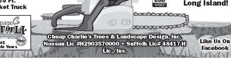 13 NORTH BABYLONSOUTH BAY’S NEIGHBOR NEWSPAPERS WEDNESDAY, APRIL 26, 2023 • WWW.LONGISLANDMEDIAGROUP.COM ROOFING STORM SPECIALISTS FREE ESTIMATES COMMERCIAL & RESIDENTIAL • ROOFS • SHINGLES • FLAT ROOFS • REPAIR SPECIALISTS LEADERS & GUTTERS • GAF CERTIFIED INSTALLERS 10% MILITARY DISCOUNT/ SENIOR DISCOUNT (MUST SHOW ID) AVAILABLE TO WORK IN ALL TYPES OF WEATHER Above All ROOFING Better Business Bureau Member CALL TODAY! Lic./Ins. #16739H.I. #HI8B43900000 WWW.ABOVEALLROOFINGLI.COM 631-665-3158 Ask About Our Extended Manufacturer’s Warranty. 380228N042623 LANDSCAPING APPLE LANDSCAPING (631) 786-5481 applelandscaping@ymail.com Lic. / Ins. Weekly Maintenance Spring Cleanups Fertilize • Organics Aerating • SOD/Seed SPRING SPECIALS! 409649N042623 OIL DELIVERIES / BURNER SERVICE 363884N042623 5/31/23 CHIMNEY SERVICE DONE BY FIREFIGHTERS THAT CARE SINCE 1982 STAINLESS STEEL LINERS CLEANING & REPAIR SPECIALISTS CHIMNEYS REPAIRED, REBUILT & TUCKPOINTING FULLY LICENSED & INSURED WWW.CHIMNEYKINGINC.COM CHIMNEY KING ENT, INC. NYC License # 2061397-DCA • Nassau County License # H0708010000 Suffolk County License # 41048-H 516-766-1666 • 631-225-2600 410791N042623 FREE ESTIMATES MASONRY SPECIALIST TREE SERVICE DANK, INC Tree Experts FREE ESTIMATES 516-799-1331 631-254-0059 • Tree Removal • Stump Grinding • Pruning • Land Clearing Policeman, Fireman, Senior Discounts CODE: SB495 409332N042623 OWNER OPERATED Nassau License # H2081200000 Suffolk License # 45806-H Nassau Office Suffolk Office 10% OFF Any Job Over $500 Must Present Coupon At Time Of Estimate. We’ll Meet & Beat Any Price! FUEL OIL GENESIS FUEL OIL 631-249-1438 www.genesisfueloil.com • HEAP ACCEPTED • SAME DAY DELIVERY • ON SITE FLEET FILLING AVAILABLE • DIESEL & OFF ROAD DIESEL • CREDIT CARDS SAME AS CASH • OPEN 7 DAYS A WEEK $4 OFF With Mention Of This Ad 369823N042623 ELECTRICAL SERVICES 326155N042623 10% OFF GUTTERS 407326N042623 Gutter Cleaning • Repairs Installation of 5”, 6” & Half Round Gutters • Leaf Guards KING GUTTER 631-888-0628 SIDING SIDING IS OUR SPECIALTY Siding • Trim Work • Windows Repairs • Gutters • Leaders • Capping INSULATE YOUR HOME AND SAVE ON YOUR ENERGY BILLS LOWEST PRICES OF THE SEASON! Deal Direct with Owner & SERVING YOUR AREA FOR OVER 20 YEARS V&P Siding & Window Corp. LICENSED/INSURED Lic. #27369-HI 631-321-4005 SAVE BIG $$$ NO JOB TOO BIG... NO JOB TOO SMALL!! CALL NOW FOR FRONT OR FULL HOUSE SPECIALS! 415110N042623 NEIGHBOR