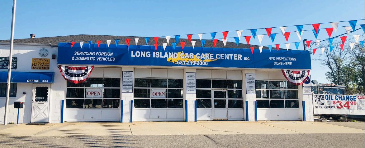 12 NORTH BABYLONSOUTH BAY’S NEIGHBOR NEWSPAPERS WEDNESDAY, AUGUST 16, 2023 • WWW.LONGISLANDMEDIAGROUP.COM LONG ISLAND CAR CARE CENTER INC. 333 BAY SHORE ROAD • DEER PARK • 631.213.2300 HOURS: MONDAY - FRIDAY 8AM-6PM • SATURDAY 8AM-1PM TECHNICIAN National Institute For AUTOMOTIVE SERVICE EXCELLENCE 414789N081623 HAVE A LARGE COMMERCIAL OR RECREATIONAL VEHICLE? MONTHLY PARKING SPACES AVAILABLE FOR RENT $99 A/C RECHARGE Up To 1 Lb. Freon Large Vehicles Extra Includes FREE Check-Up Cannot be combined with any other offer. NEW YORK STATE INSPECTIONS DONE HERE Se Habla Español $5 OFF $10 OFF $14999 SYNTHETIC OIL CHANGE ANY SERVICE OVER $100 FRONT OR REAR BRAKE PADS Up To 5 Quarts. Cartridge Oil Filters Extra. Reg. $79.99 +TAX +TAX PER SET Electronic Brake Systems Extra Cannot be combined with any other offer. $4500 PRE-PURCHASE INSPECTION +TAX Let Us Inspect The Vehicle Before You Buy It! Cannot be combined with any other offer. $29999 BRAKES & ROTORS INSTALLED +TAX PER SET Starting At Coated Rotors / Electronic Brake Systems Extra Cannot be combined with any other offer. FREE SCAN CHECK ENGINE LIGHT ON?? Cannot be combined with any other offer. Cannot be combined with any other offer. Cannot be combined with any other offer. $8500 +TAX Radiator Drain/Flush/Fill Green Coolant Up to 2 Gallons. Dex-cool/Euro Coolant Extra ANTI-FREEZE SPECIAL Cannot be combined with any other offer. WE CARRY MERCEDES • BMW • VW 5W40 FULL SYNTHETIC DISTRIBUTOR INCLUDING EUROPEAN MAKES IS YOUR COLLEGE STUDENT HEADING BACK TO SCHOOL? BACK TO SCHOOL SPECIALS $3499 OIL CHANGE SPECIAL +FREE Seasonal Check-up! • Lights Check • Radiator and Coolant Check • Belts & Hoses Check • Tire Safety Check • Plus...Road Test • Brake Check • All Fluid Levels Check • Suspension Check 414763BN081623 10% OFF (631) 487-0939 • (516) 417-8403 Lenny Mannino Master Electrician Licensed & Insured FREE ESTIMATES 0% INTEREST NOW HIRING • FULL TIME/PART TIME