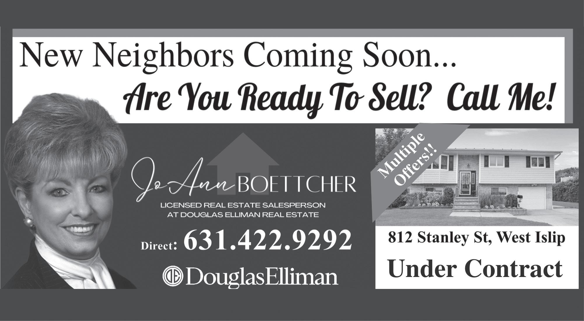 5 NORTH BABYLON SOUTH BAY’S NEIGHBOR NEWSPAPERSWEDNESDAY NOVEMBER 30, 2022 • WWW.LONGISLANDMEDIAGROUP.COM ANIMAL HOSPITAL All Pets YEARLY EXAMS • Heartworm Test • Yearly Vaccinations • Fecal Test SENIOR DOGS • Weight Management • Hip Problems BOB CORONA, DVM (631) 376-1133 • 975 Little East Neck Rd. W. Babylon 1/2 Mile North Of Sunrise Hwy. Science Diet NEW HOURS! Mon.-Fri. 8am-6pm • Sat. 8am-1pm 401494N113022 Dr. Bob Corona STILL PRIVATELY OWNED & OPERATED BY DR. BOB CORONA OVER 27 YEARS! Low Cost Spays & Neuters Protect Your Pets With Frontline & Heartguard Let Us Get Your Pets Healthy For The Holidays! NEW GROOMER CINDY IS HERE! CALL TODAY FOR AN APPOINTMENT NEW CLIENTS ALWAYS WELCOME RACHEL 7 years old. Female American Bully. Sweet and affectionate. Loves to walk and play ball. FRECKLES 8 years old. Male Hound/ Boxer mix. Fun loving. Loves to walk and play. JACK 11 months old. Male Aussie/Border Collie. Enjoys his walks and playtime. WEEZY 12 years old. Male Maltese. Very sweet and loves everyone. Loves to cuddle. Neighbor Pets’ Place Adopt a pet today! To inquire about having your shelter included in this column, email info@longislandmediagroup.com! LITTLE SHELTER • 33 WARNER ROAD, HUNTINGTON • 631.368.8770 BROOKHAVEN ANIMAL SHELTER • 300 HORSEBLOCK ROAD, BROOKHAVEN • 631.451.6950 QUINN 12 year old female. Easy to walk, housebroken and social with other dogs. BRANDI 5-7 year old female. Loves everyone she meets. Outgoing and energetic. MADISON Under a year old female. Loving girl who is constantly purring. NEVILLE 3-5 year old male. Affectionate and sweet boy who loves to curl up on lap. BOBBI AND THE STRAYS • 2 RIDER PLACE, FREEPORT • 516-378-4340 • BOBBIANDTHESTRAYS.ORG CRYSTAL 10 year old female Husky. Gentle and good natured. Loves slow walks. OLD MAN JENKINS 8 year old Labrador mix. Sweet boy who makes for a great companion. FLOWER 8 year old female Collie mix. A shy beauty ready to find her forever home. LOUIE 10 year old male Doxy mix. Armed with a lively spirit and a clever, intuitive mind. The Best Move You Will Ever Make! 404685N113022 516-383-7830 Licensed Real Estate Sales Agent KerryMastro@gmail.com Kerry Mastrobuoni Call Now To Schedule your FREE Home Evaluation! Call or Text THINKING OF SELLING? NOW IS THE TIME TO MAKE YOUR MOVE WHILE INVENTORY IS STILL LOW