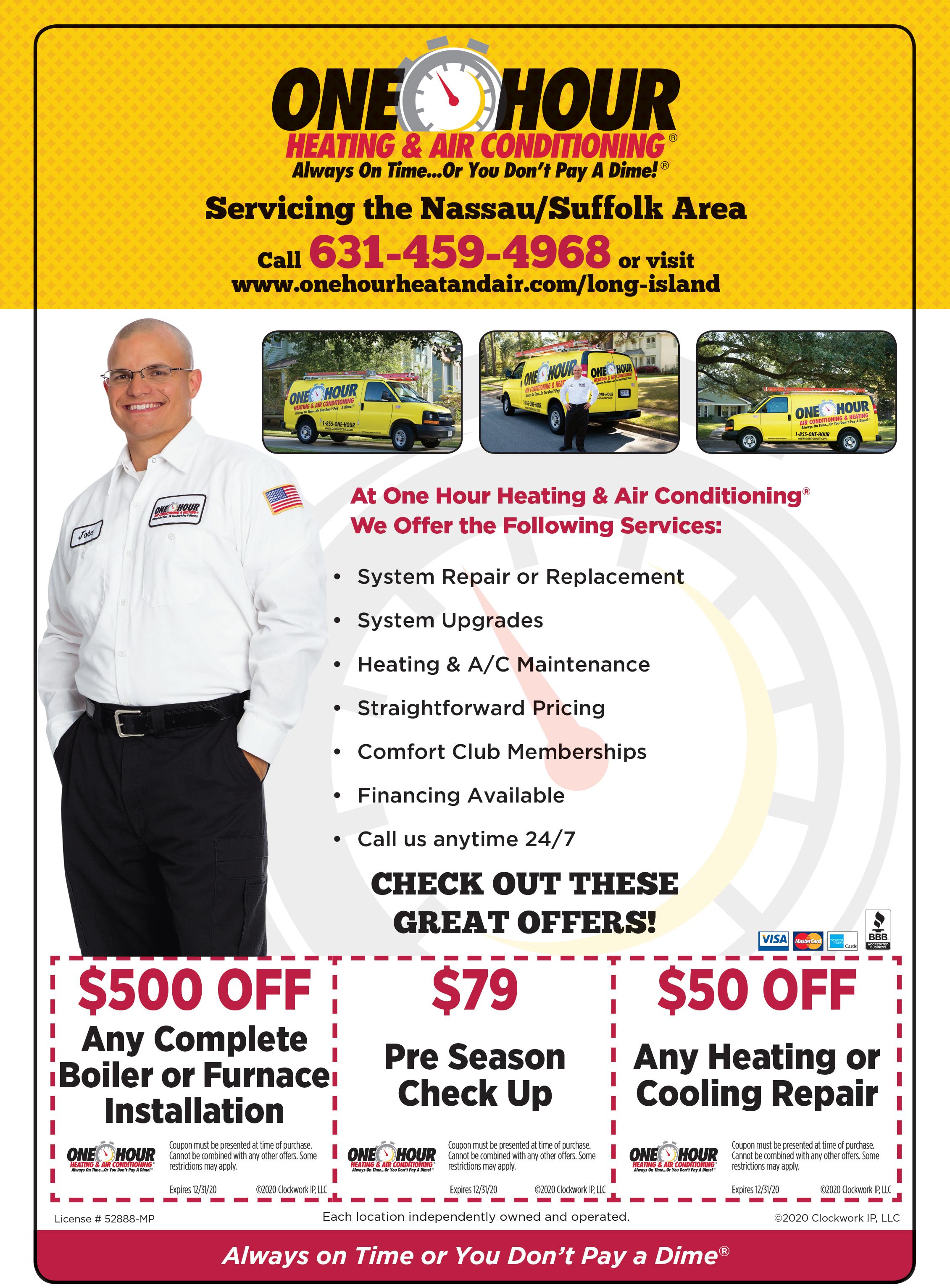 WE REFILL 20LB, 30LB & 40LB PROPANE TANKS! WE SERVICE, REMOVE & INSTALL HVAC UNITS & POOL HEATERS, BOILERS, HOT WATER HEATERS & OIL TANKS 406897N113022 Veterans & Senior Discounts SHOP SMALL BUSINESS HAPPY HOLIDAYS We are a Family Owned Business providing service superior to the big names 238 BROADWAY • AMITYVILLE 631-264-8800 Call About Our Service Contracts We Accept Heap, Social Services, and Project Warmth. $5.00 Off ANY AMOUNT OF OIL With Coupon. Expires 12/31/22. Cannot Be Combined With Other Offers. Credit Cards Same As Cash