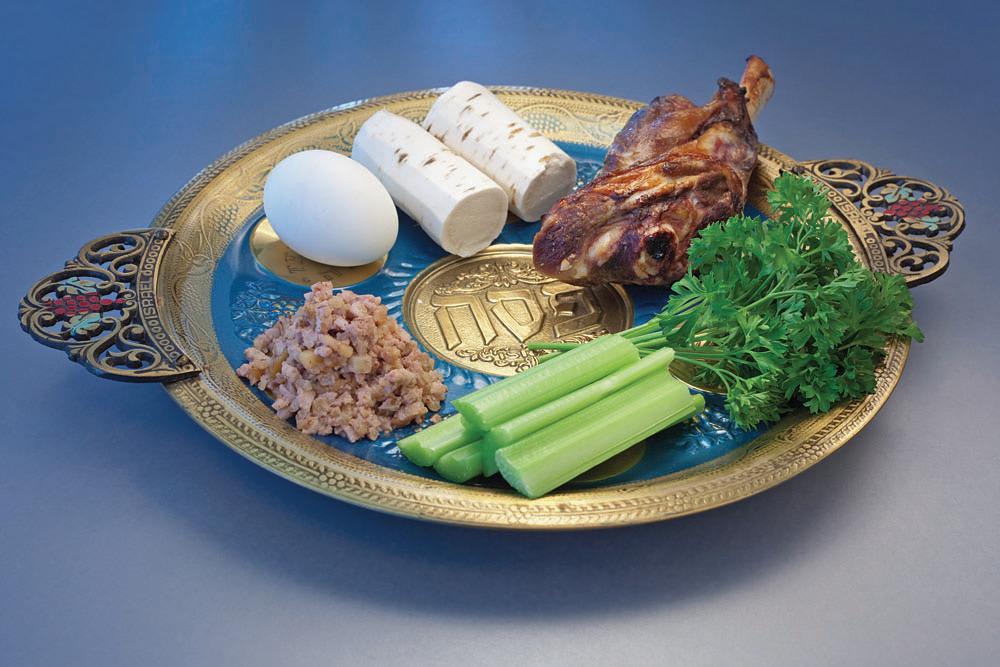 seder plates, substitutions may need to be made. Traditionally, an egg, bitter herbs, a shank bone, parsley, haroset (chopped