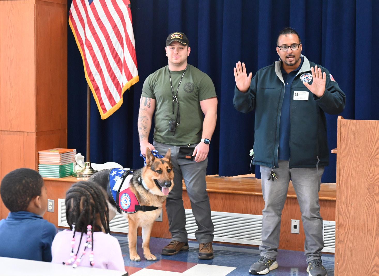 In recognition of Veterans Day, South Bay Elementary School in the West Babylon School District had a special visit from representatives from Paws of War and service dog Echo on Nov. 7. Paws of War is a nonprofit organization that supports military veterans and first responders by rescuing and training shelter dogs and pairing them with those in need of service or companion animals. Students learned how the organization works to reunite deployed service members with animals they befriended overseas and provides ongoing support and training for both the animals and their handlers. Through its mission, Paws of War aims to improve the lives of both veterans and rescue animals, giving each a second chance. Photo courtesy of West Babylon School District