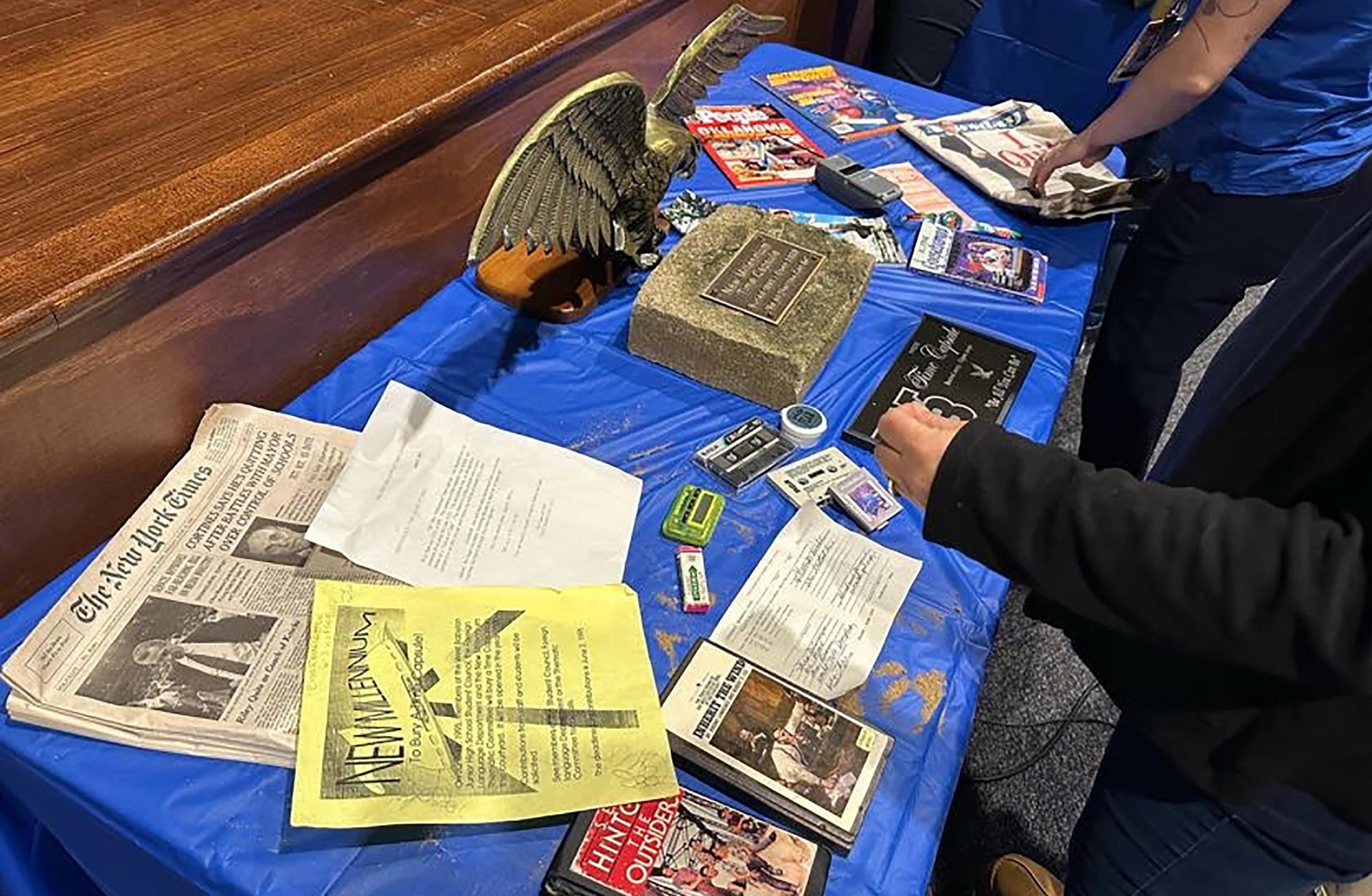 Following the opening, students took part in a museum-style walk in the gymnasium to view these items and learn more about the era in which they were sealed away. To continue the tradition, today’s students will assemble and bury their own time capsule, complete with a newly installed plaque and instructions for it to be opened in 25 years.