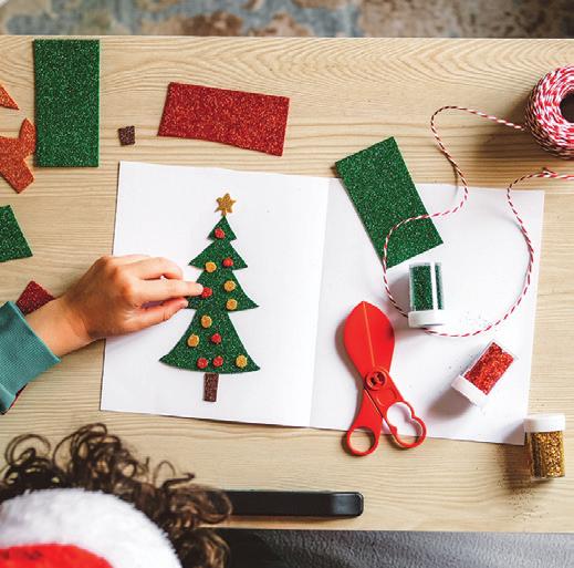 It can be fun to create a diorama or small winter landscape that can be set out with other decorations. Craft stores will likely sell small, plastic evergreen trees this time of year, or they may be available in the model train aisle of a local hobby shop. Trees can be given snowy boughs with a little acrylic paint. Include figures of bunnies, deer and whatever else kids can dream up. A strand of LED, batteryoperated lights can add some illumination to the scene. Secure items to cardboard or foam board.