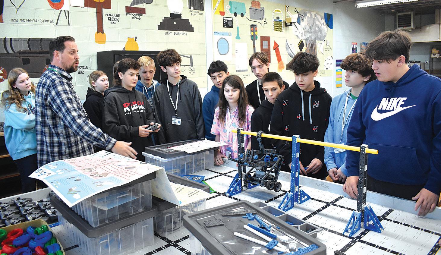 EARNING POINTS - Seaford Middle School technology teacher Matthew Dolan shows his eighth graders a way their teams can earn points in an upcoming robotics competition. Photo courtesy of the Seaford School District