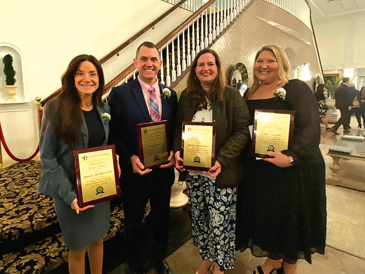 SCOPE HONORS BAY SHORE STAFF AND COMMUNITY - Members of the Bay Shore School District staff and community were recognized at the 23rd Annual SCOPE School District Awards Dinner. These individuals were recognized for their outstanding contributions to supporting the students of Bay Shore. Jennifer Brownyard, School Board Service Award, Amy Nardone, Teacher Service Award, Louis Balsamo, Administrator Service Award, Amanda DellUniversita, Administrator Service Award.