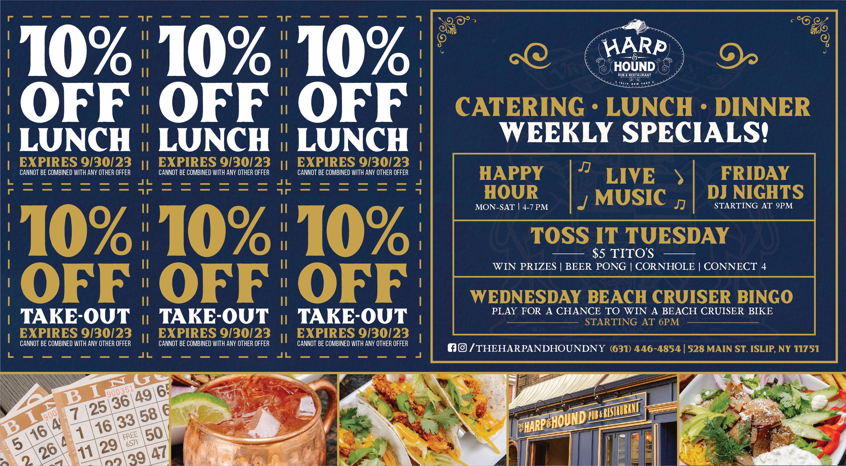 19 SOUTH BAY SHORESOUTH BAY’S NEIGHBOR NEWSPAPERSWEDNESDAY, AUGUST 16, 2023 • WWW.LONGISLANDMEDIAGROUP.COM 414808N081623 Courtesy by Doodle Dog Graphics Open 7 Days • Market Opens At 9am Kitchen Opens At 11am 120 MAIN ST. ISLIP A Fresh Fish Tradition Since 1938 FRESH • COOKED • TAKE-OUT Seasonal Outdoor Dining! 15% OFF FRESH SEAFOOD PURCHASES OF $25 OR MORE WITH COUPON ONLY. NOT TO BE COMBINED WITH ANY OTHER OFFER. MUST PRESENT THIS COUPON. EXP. 8/31/23 EXCLUDES LOBSTER & CRAB PRODUCTS. 1/2 PRICE DINNER WHEN YOU PURCHASE 1 DINNER AT REGULAR PRICE EACH DINNER MUST EXCEED $15. HIGHER PRICE PREVAILS. EAT IN/TAKE OUT. NOT TO BE COMBINED WITH ANY OTHER OFFER. EXCLUDES LOBSTER & CRAB PRODUCTS. MUST PRESENT THIS COUPON. EXP. 8/31/23 631.581.0125 Restaurant Open All Year Round Raw Bar Open Friday, Saturday & Sunday Weather Permitting C’mon Down & Try Our Lobster Rolls!