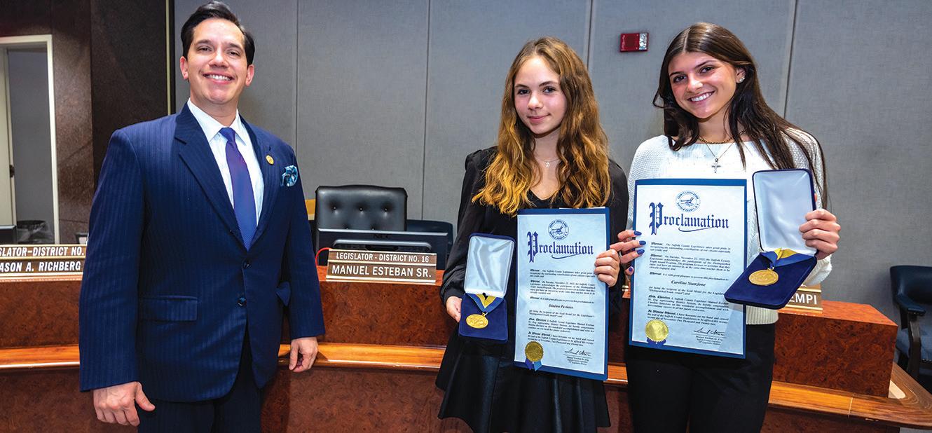 Suffolk County Legislator Manuel Esteban Sr, Esq. (R-16th LD) recently recognized his recipients of the Distinguished Youth Award Program at a Suffolk County Legislature General Meeting.