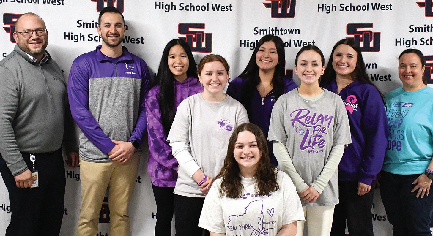Pictured: Smithtown High School West Relay For Life team along with Assistant Principal Michael Freiberg and teachers Dillon Archer and Cathy Abbott. Photo courtesy of Smithtown CSD