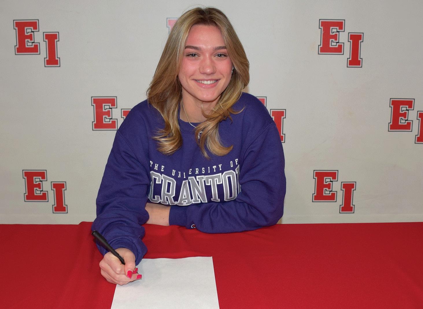 - East Islip High School senior Jenna Borelli recently signed a national letter of intent to play soccer this fall for the University of Scranton. She plans to major in nursing. A center midfielder, Borelli has played on the varsity soccer team since her freshman year. She awarded Scholar-Athlete, All-League and All-Conference honors as well as being named MVP in the Suffolk County championship game in 2021. She most recently received a scholarship from the Suffolk County Girls Soccer Coaches Association. Photo courtesy of East Islip School District