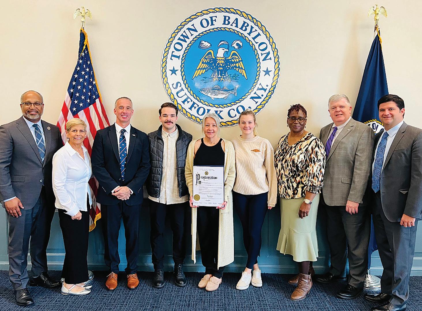 BEAUTIFICATION AMBASSADOR OFFICIALLY INDUCTED - Denise Heegan of North Babylon was recently inducted as a Beautification Ambassador by the town board. The Town of Babylon Beautification Program aims to preserve the town’s cleanliness and beauty. Denise’s appointment as an ambassador for North Babylon is a significant step towards achieving this goal.