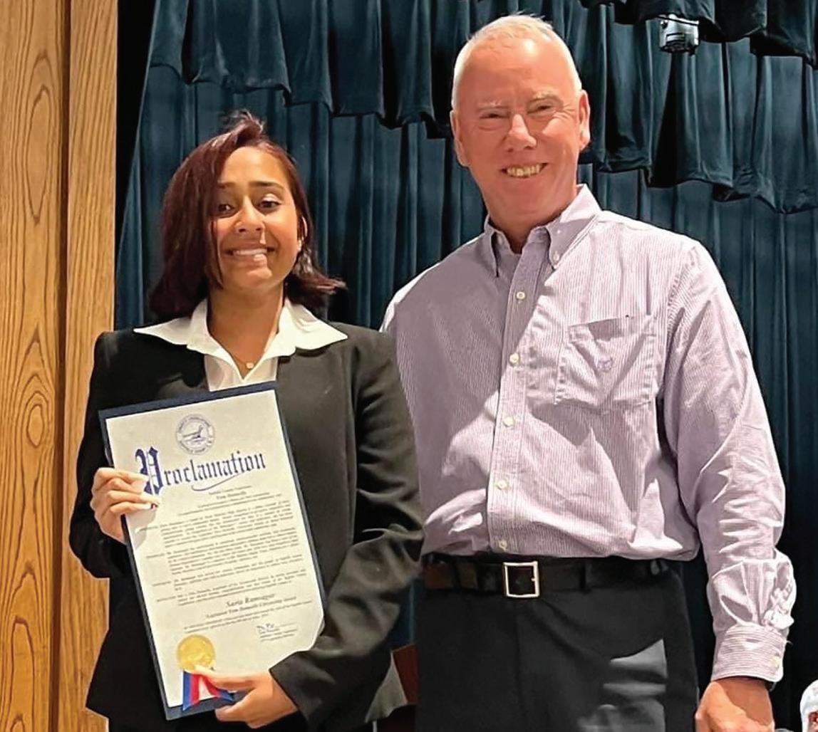 SURIA RAMSAGAR HONORED WITH CITIZENSHIP AWARD - Suffolk Legislator Tom Donnelly presents a County Proclamation to North Babylon High School Student Suria Ramsagar of North Babylon as the 2022 Legislative District 17 Citizenship Award winner.