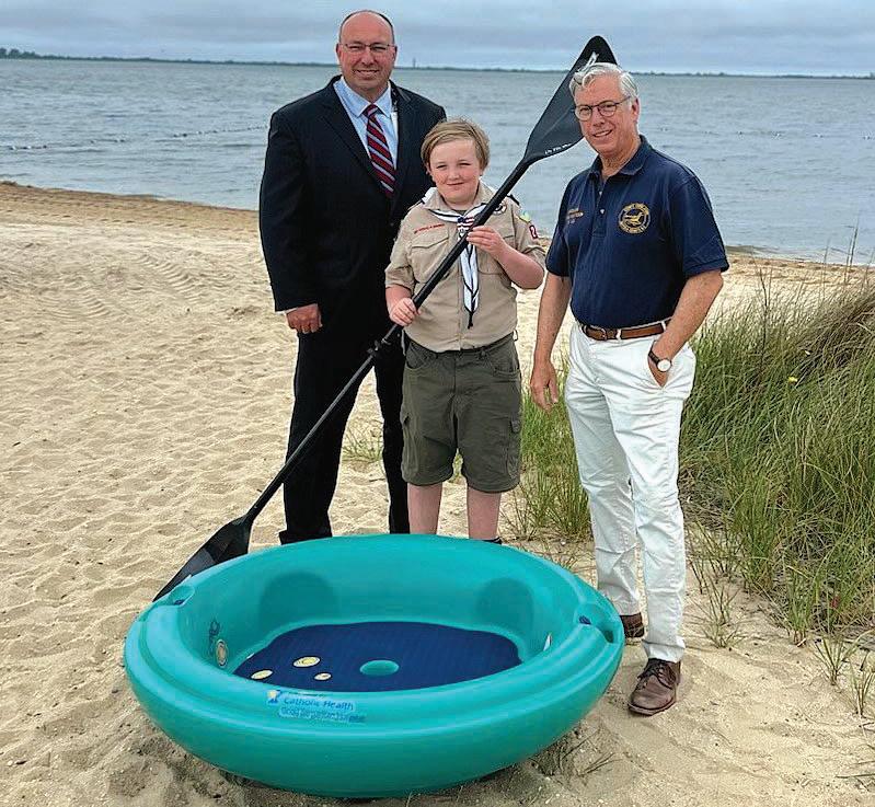 LEGISLATOR FLOTTERON SECURES SPONSORSHIP - Legislator Steven J. Flotteron secured sponsorship from Catholic Health Good Samaritan University Hospital for Baiting Hollow Scout Camp run by Suffolk County Council of the Boy Scouts of America. The hospital’s sponsorship of the CORCL program allowed the camp to purchase new boating equipment for the hundreds of scouts who use the camp each year. Pictured (LR): Catholic Health Good Samaritan University Hospital COO John McMurray; Scout with Pack 221 Bryce Russell and Suffolk County Legislator Steven J. Flotteron.