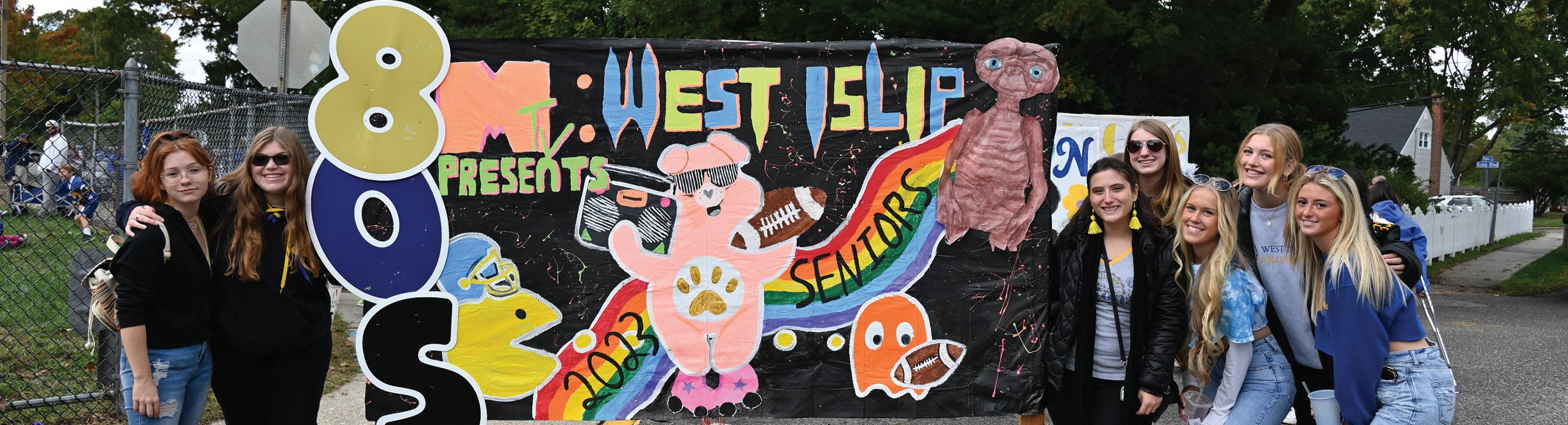 Islip High School. This year’s class float theme was “through the decades,” and the senior class took home the award for best float with their ‘80s theme.