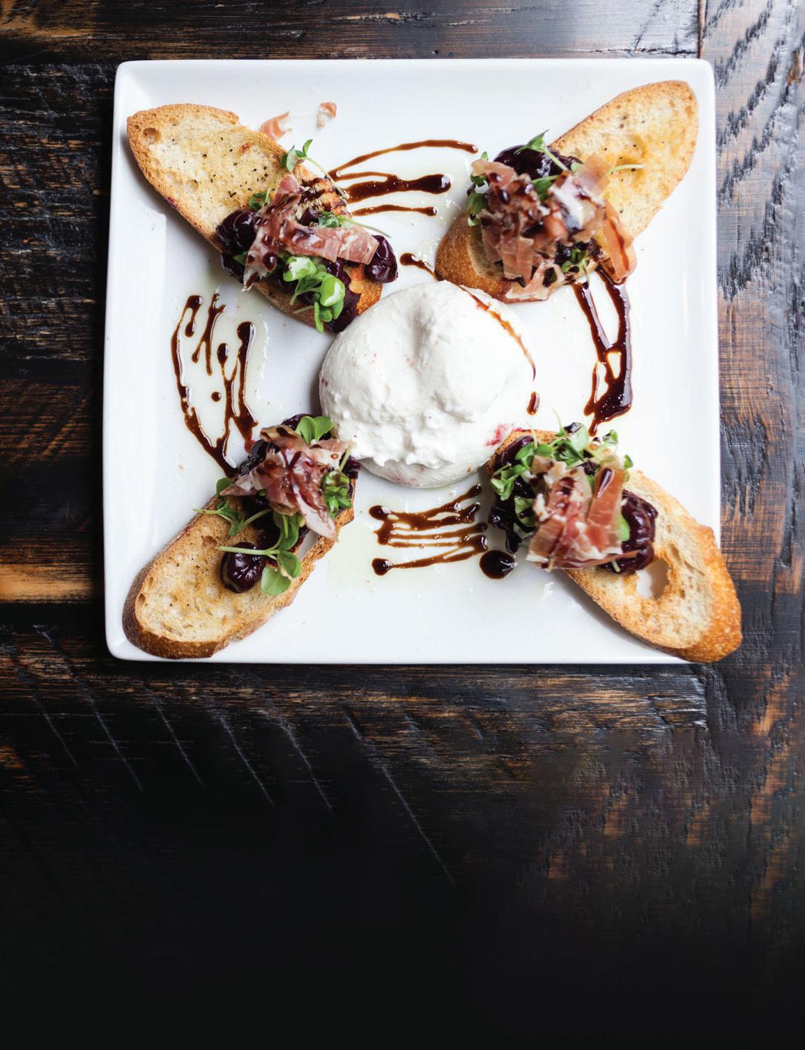 Burrata with balsamic cherry compote, fresh basil, prosciutto, grilled crostini, aged balsamic, smokedMatchaEVOOTea Creme BruleeTomahawk Steak