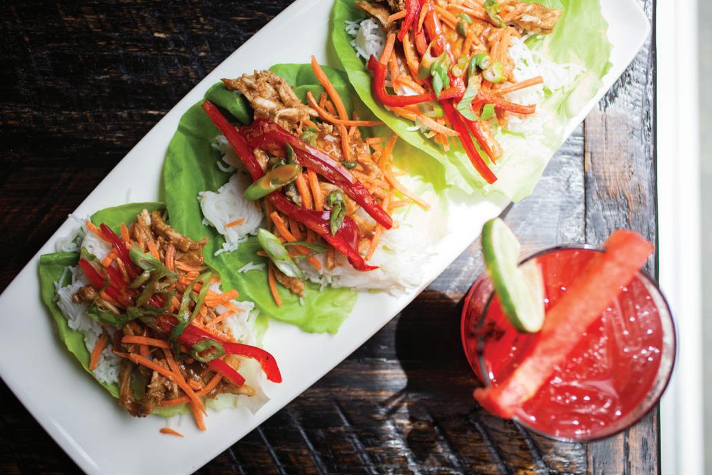 Thai Peanut Chicken Lettuce Wraps Summer Berry Salad Seasonal Smoked Cocktails Locally-sourced Beef Burgers