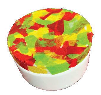 ☐ Carefully place the tissue paper pieces onto the lid, smoothing them down as you go.