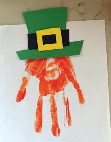 3. Press the hand firmly onto the paper with fingers spread. This will be the leprechaun’s beard.