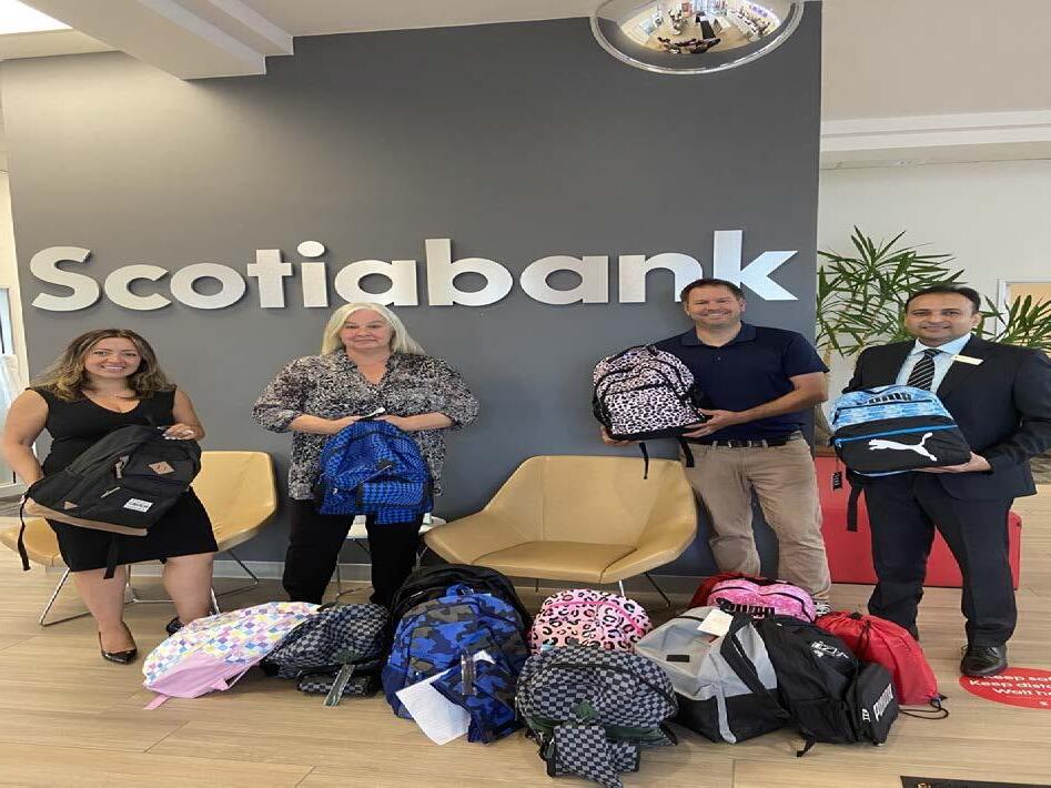 The Scotiabank GTA NORTH Women in Leadership group along with their district branches hosted a Back to School Backpack and School Supply Drive for the Newmarket Food Pantry. This was the inaugural community initiative from the District Women in Leadership group and they plan on making it an annual event. Donating school items allows families on a strict budget to direct that portion of their budget back to food and shelter. The backpacks were geared towards Grade 1 - 6 students and included pencils, pens, pencil cases, crayons, markers, paper, binders and lunch bags. Thank you to the Scotiabank team for giving back to our community!