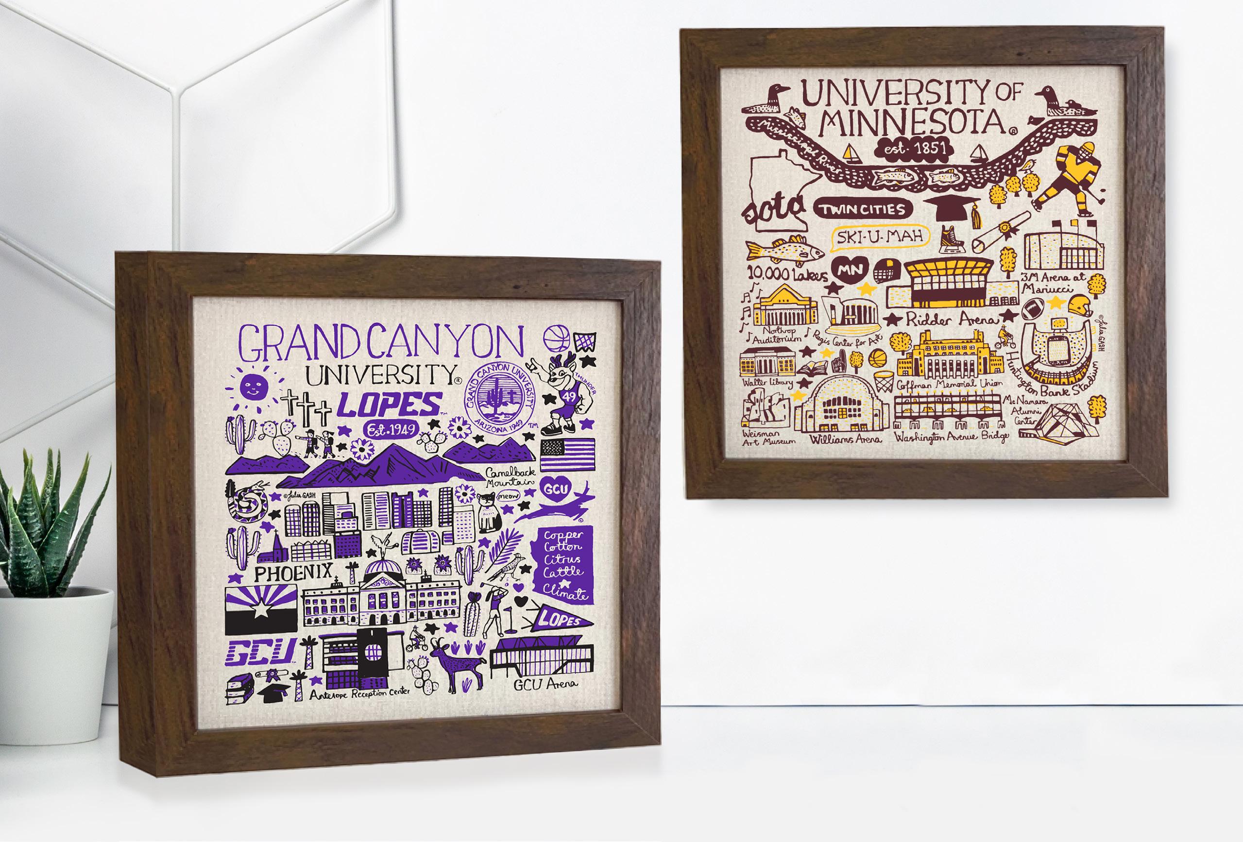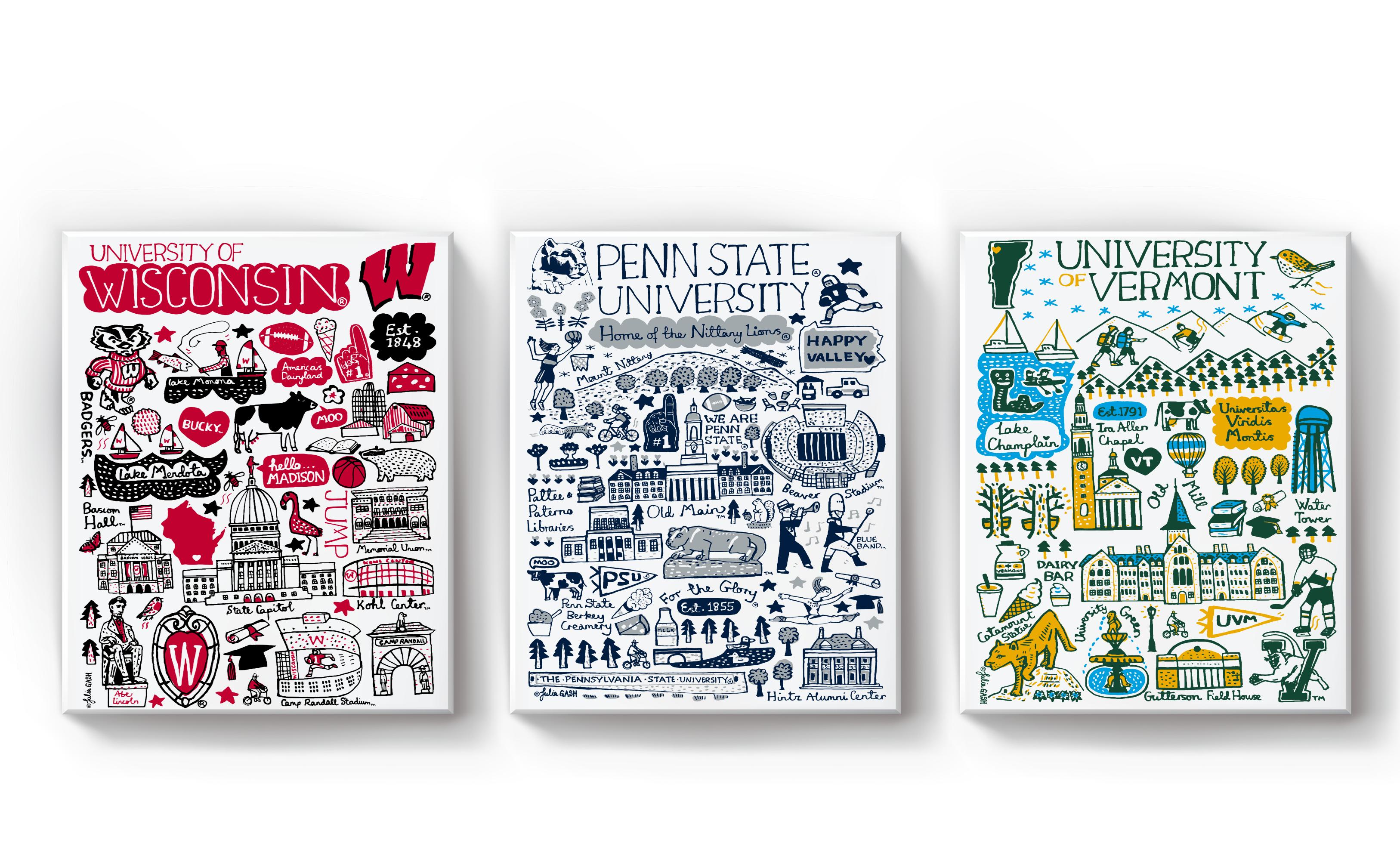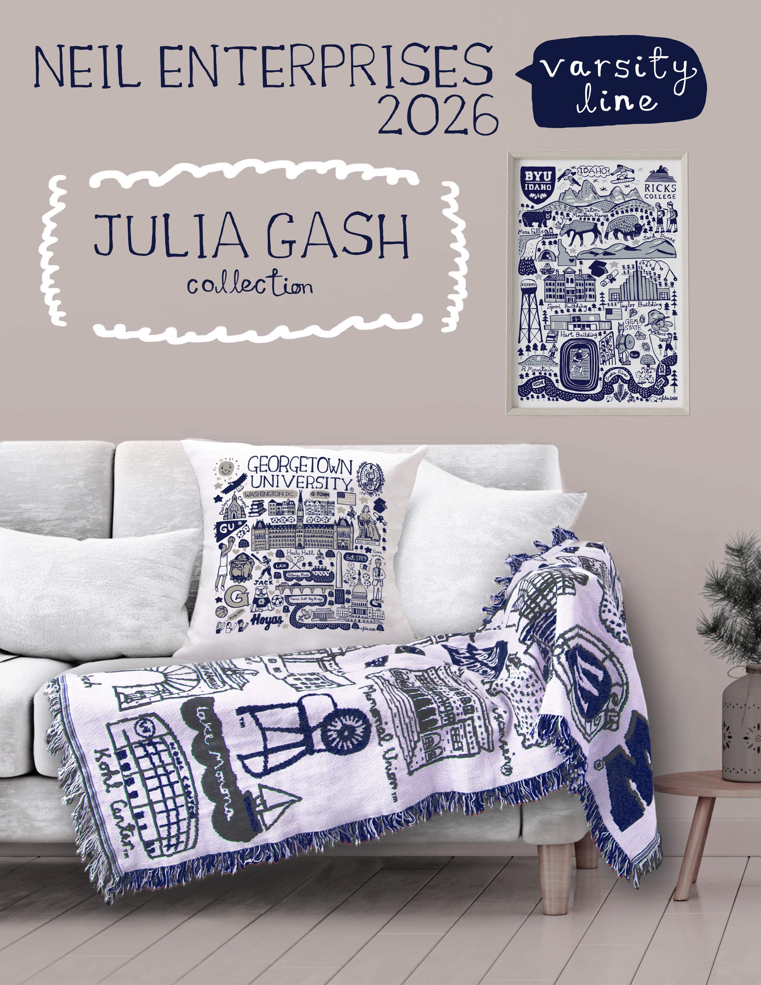 More recently, Julia has widened her portfolio to include North American college campuses in an exclusive agreement with Neil Enterprises Varsity Line.