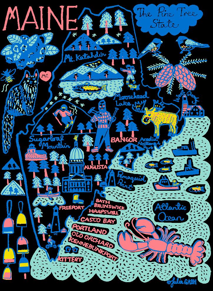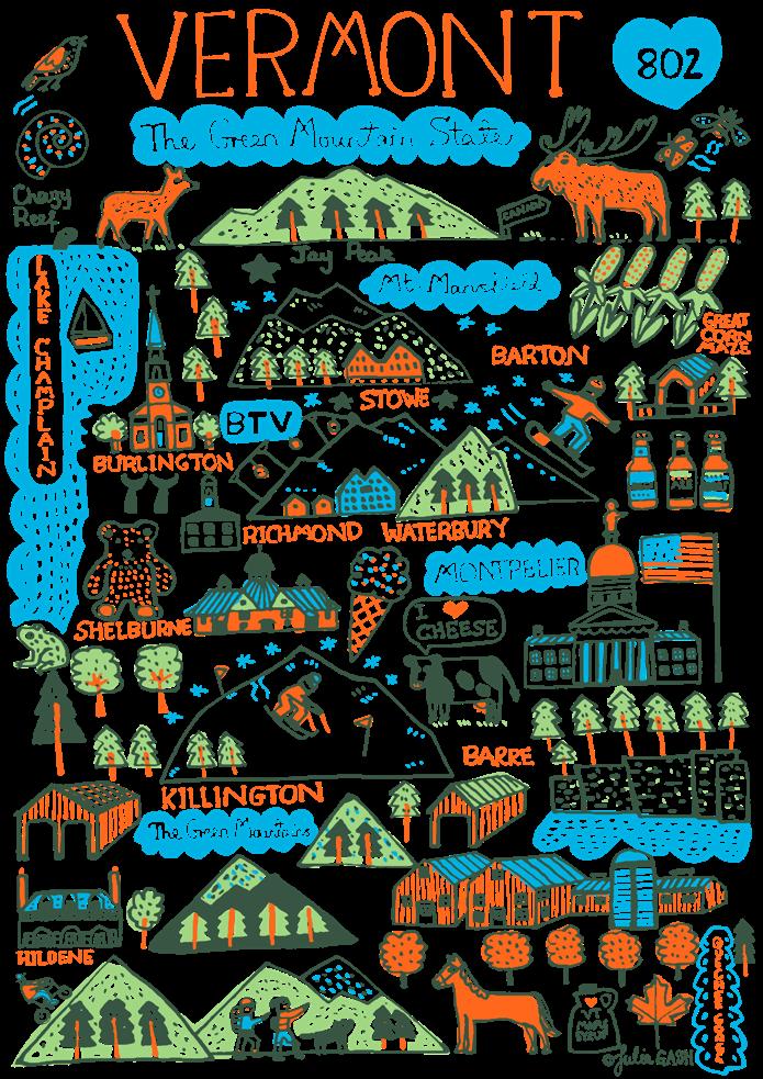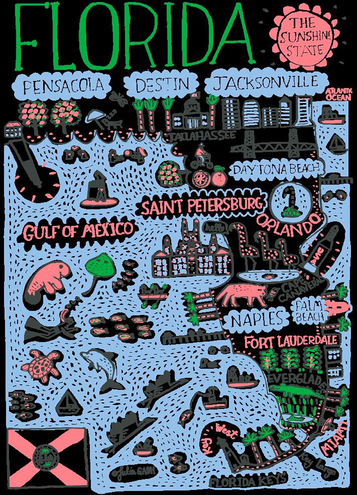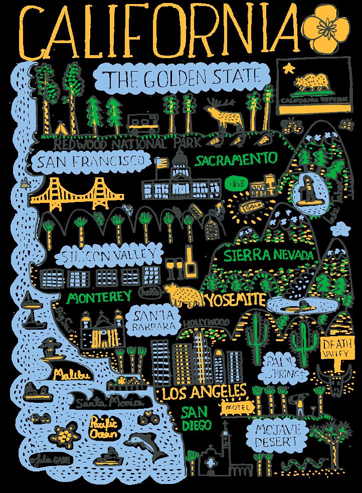 Julia’s distinctive handwriting is expressed as spirited and creative line drawings infused with a vibrant color palette. Over the past five years Julia has created a unique and everlasting archive of illustrations featuring cities, towns and regions from all around the world.