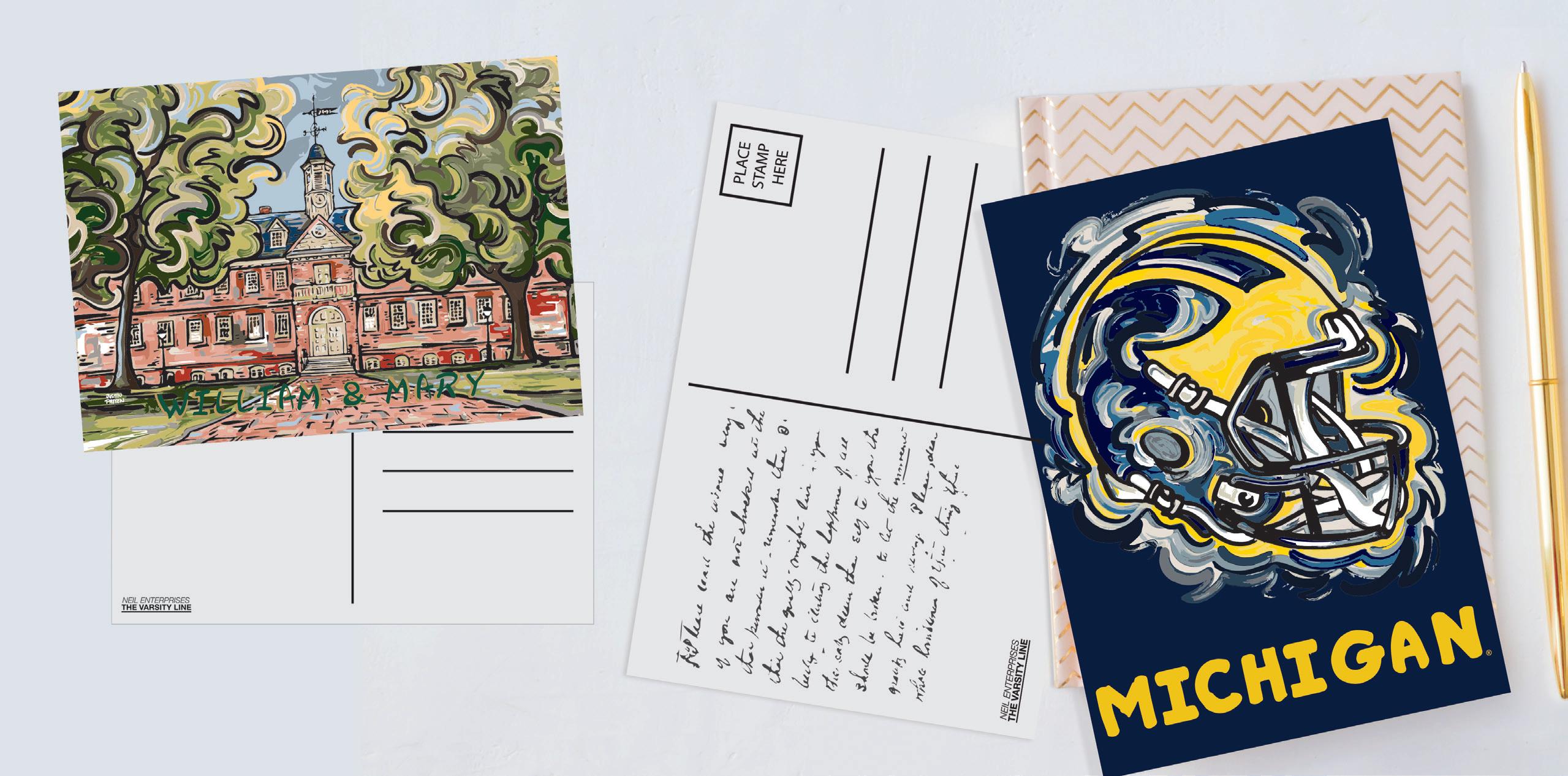 From there, Justin photographs and digitizes the artwork to be made into high-end licensed products that represent logos you know and love from the NCAA, NFL, NHL, MLB, NBA, and IMS in a unique and exciting way.