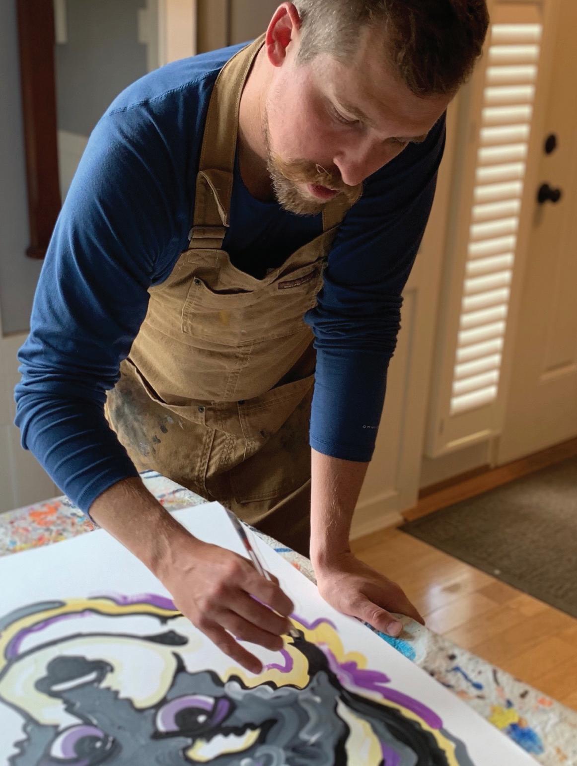 Justin and Rachel love sharing his art with sports fans and art lovers around the globe. They enjoy live-painting, meeting fans and alumni, doing promotional events, and love to support philanthropic foundations with live-painting entertainment and donations. Justin is always looking for more creative challenges to push boundaries and expand his portfolio.