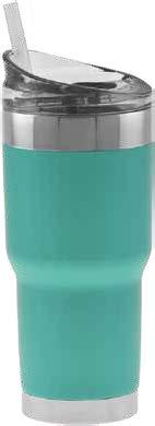 double walled stainless, copper vacuum-insulated, with twist-on tumb slide lid & straw