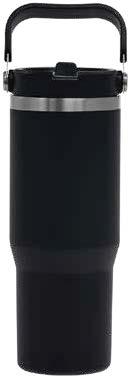 double walled stainless steel, vacuum insulation, threaded lid with thumb tab & silicone straw