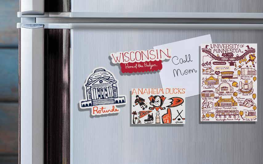 Julia’s designs connect people with place, whether they are culture vultures on tour or locals who want to celebrate their city in style. The whimsical illustrations communicate a child-like vision and o er a playful and honest interpretation of the world in which we live. A cyclist wearing a hat can be found in all of Julia’s “Cityscapes” and this little figure symbolizes Julia: travelling around the world through her art.