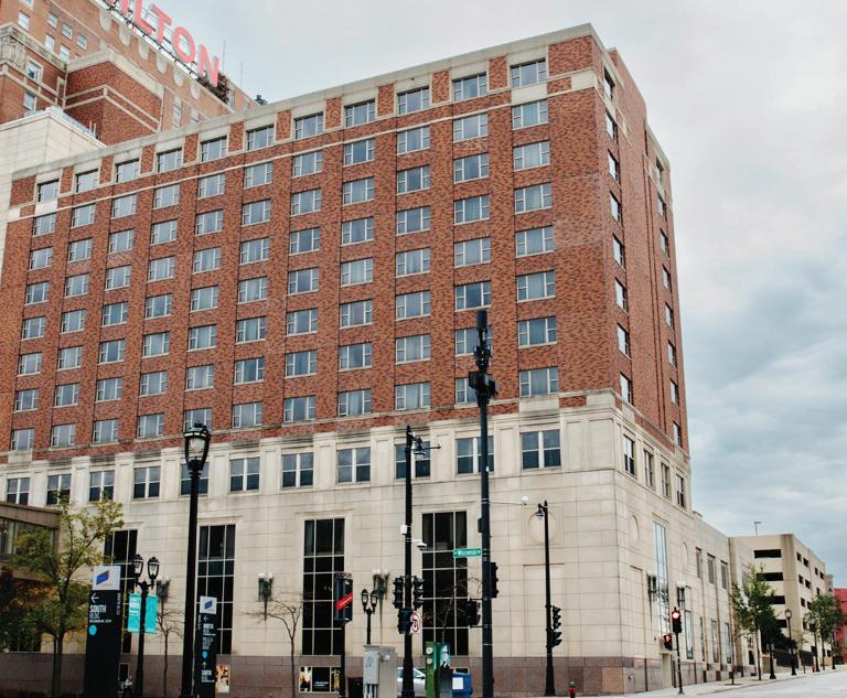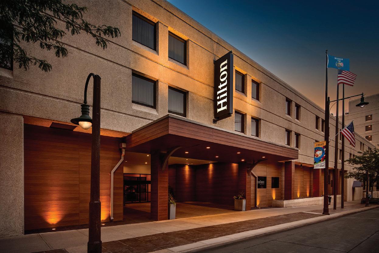 downtown Milwaukee. It’s connected to the Baird Center, the state’s largest convention center, via a climate-controlled skywalk, steps from sports and entertainment, dining and Marquette University. The hotel features 175 guest rooms and suites, connected, covered parking garage, seamless access to the neighboring Hilton Milwaukee’s dining experiences, and more than 34,000 square feet of event space.