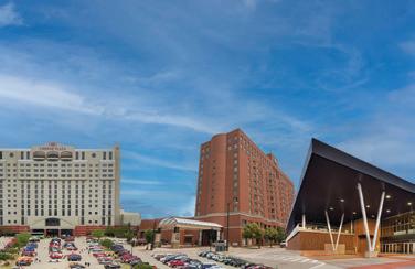 hub for business. Over its evolution, the property also added a five-level, 4,458-car parking garage and a 7,000-foot skybridge connecting it to the convention center. The facility attracts millions of visitors annually for trade shows, conferences and special events. Its 250,000-square-foot hall accommodates 1,225 booths, with the ability to configure multiple halls for up to 3,566 booths. With 50 meeting rooms, on-site catering and a team of experienced professionals, the convention center remains a top destination for national and international events.