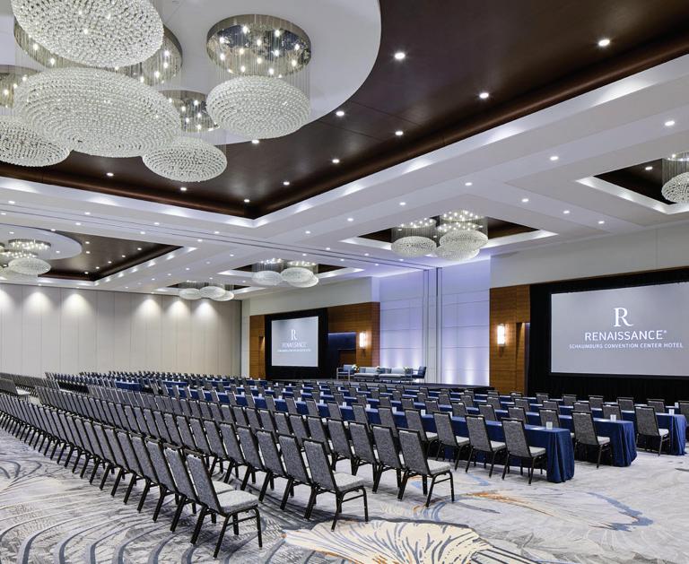 In Chicago Northwest, the Renaissance Schaumburg Convention Center Hotel recently completed a renovation, embarking on an exciting new chapter. The property has 150,000 square feet of space, including a 100,000-square-foot convention center, a 28,000-square-foot ballroom and 28 breakout rooms to accommodate gatherings of every scale. Guests will notice refreshed details — from 500 fully renovated guest rooms and a 900-car covered parking center with complimentary parking to LED lighting and upgraded exhibitor amenities. The renovation extends into every corridor and foyer with new flooring, lighting and furnishings that give the property a renewed