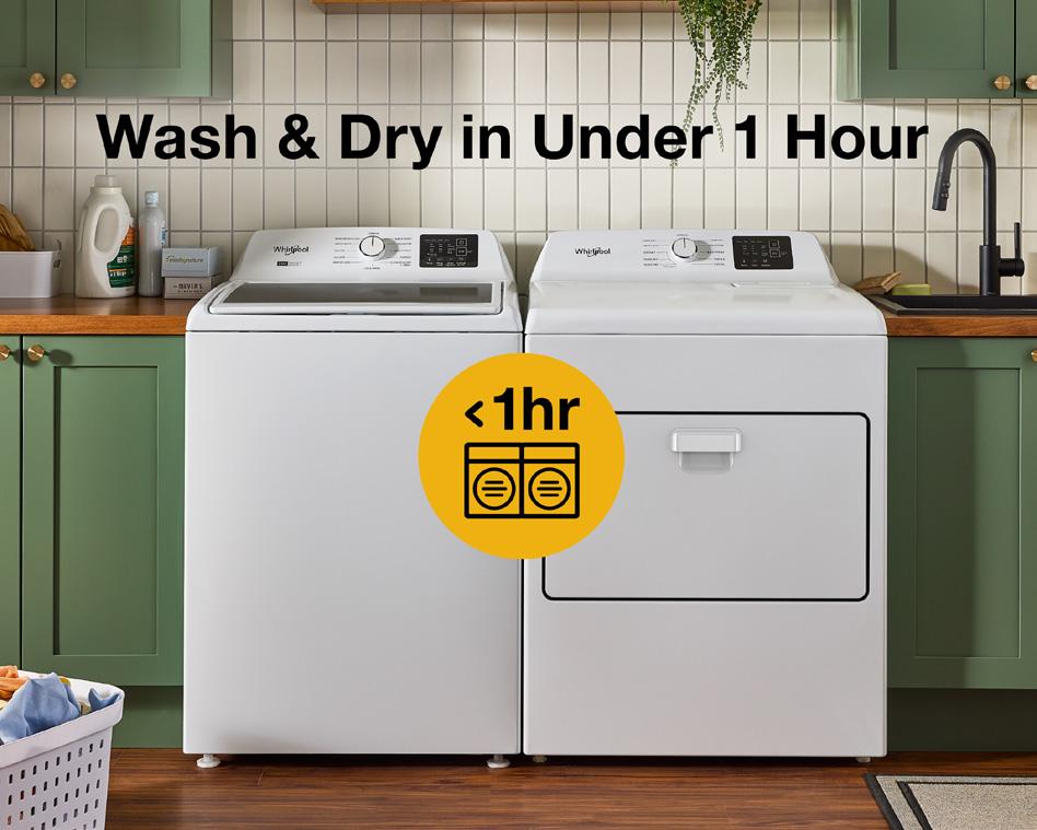 LARGE CAPACITY FRONT AND TOP LOAD BUILT TO TACKLE THE LARGEST LOADS AFTER FAMILY VISITS STRAPPED FOR TIME? THE QUICK WASH AND DRY CYCLES GETS CLOTHES DONE IN UNDER AN HOUR