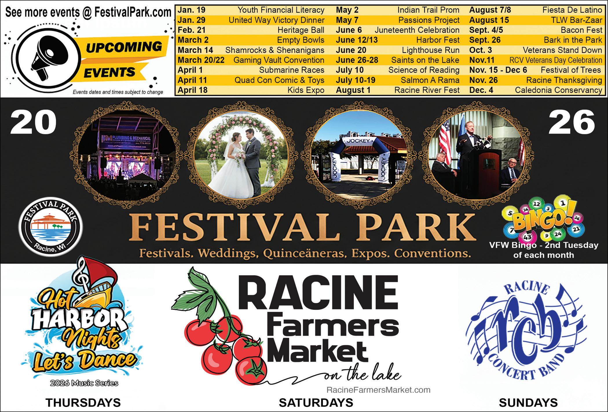 All events are subject to change without notice. For the most up-to-date and detailed event information and larger event listing, go to visitracinecounty.com/events.