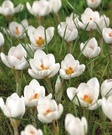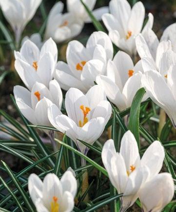 Krokusen ”Jeanne d”Arc” är en klassisk storblommig krokus med rena vita blommor och en klar gyllene mitt. Den starka och klara färgen gör den till ett elegant val för gräsmattor, rabatter och krukor.