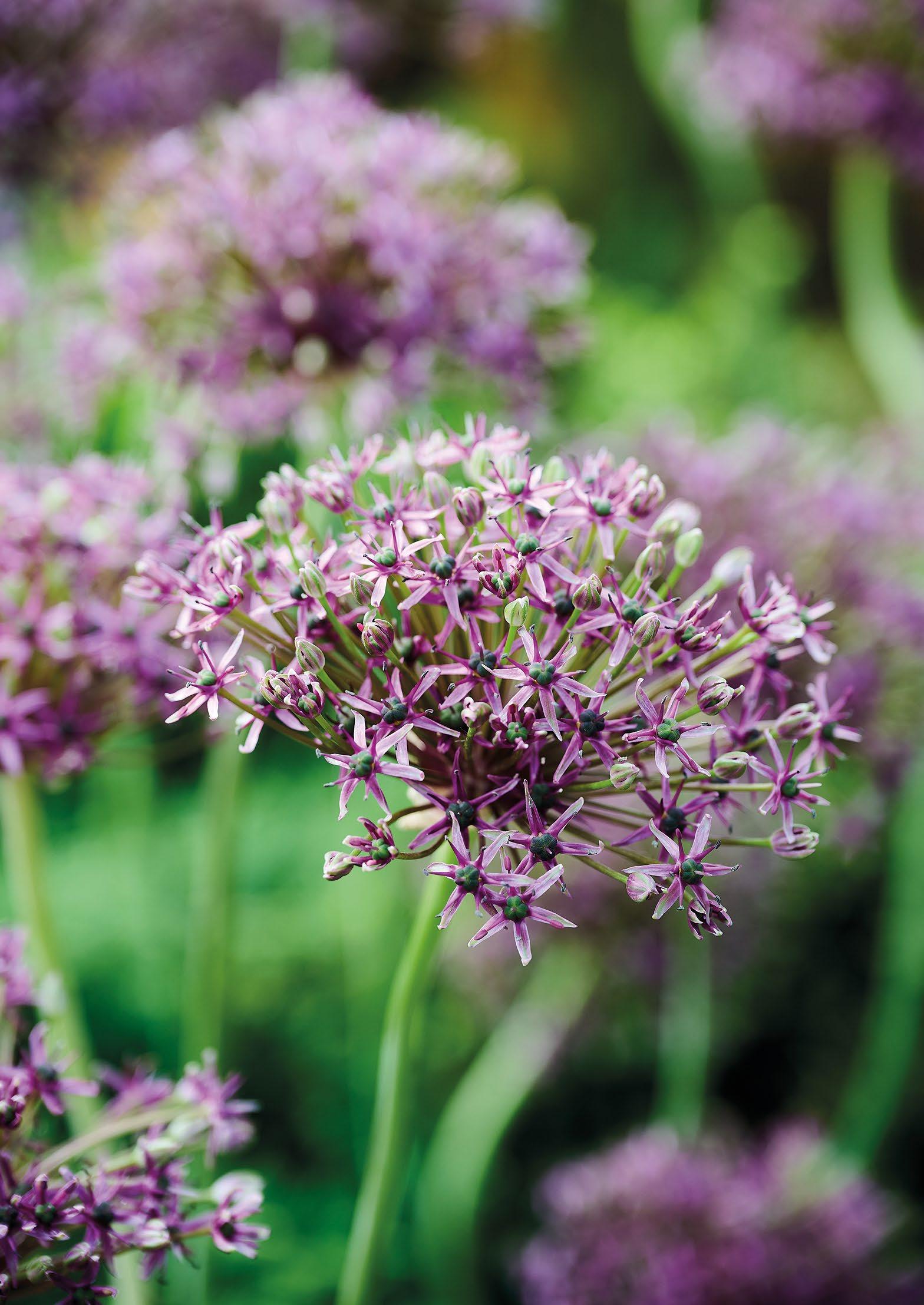 ”Miami” Allium har fylliga lila blommor på höga, raka stjälkar. Den är pålitlig och djärv och tillför livfull färg till vårens och sommarens rabatter. Anses avvisande på sork och mindre smaklig för rådjur, hare och kanin.
