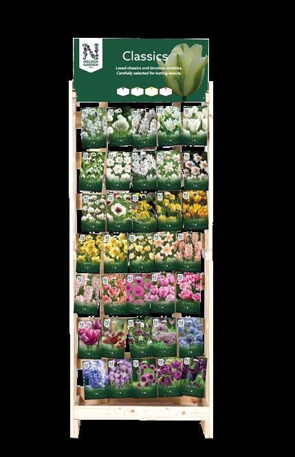 En samling av våra mest beprövade klassiker. Kollektionen fokuserar på hög tillgänglighet och attraktiv prissättning i prisklass A och B, vilket ger ett tryggt sortimentsval med god omsättningspotential. Innehåller 35 noggrant utvalda sorter, presenterade i ett elegant träställ, färgordnade och kompletterade med en säljande toppskylt med plats för prismärkning. 282 fp.