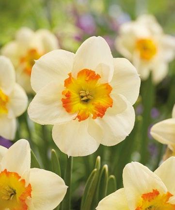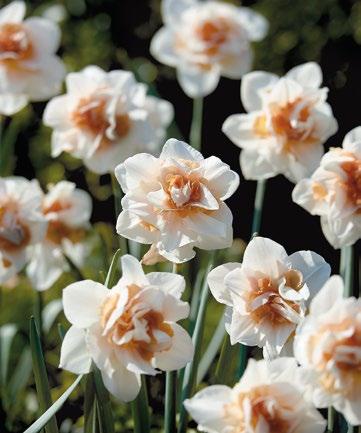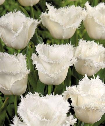 Stora, krämvita blommor med dramatiskt krusade kanter. En iögonfallande sort som skapar ett kraftfullt uttryck i vårens rabatter.